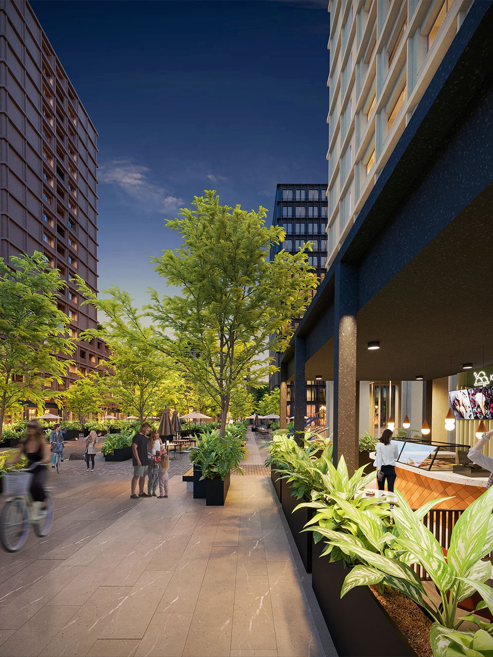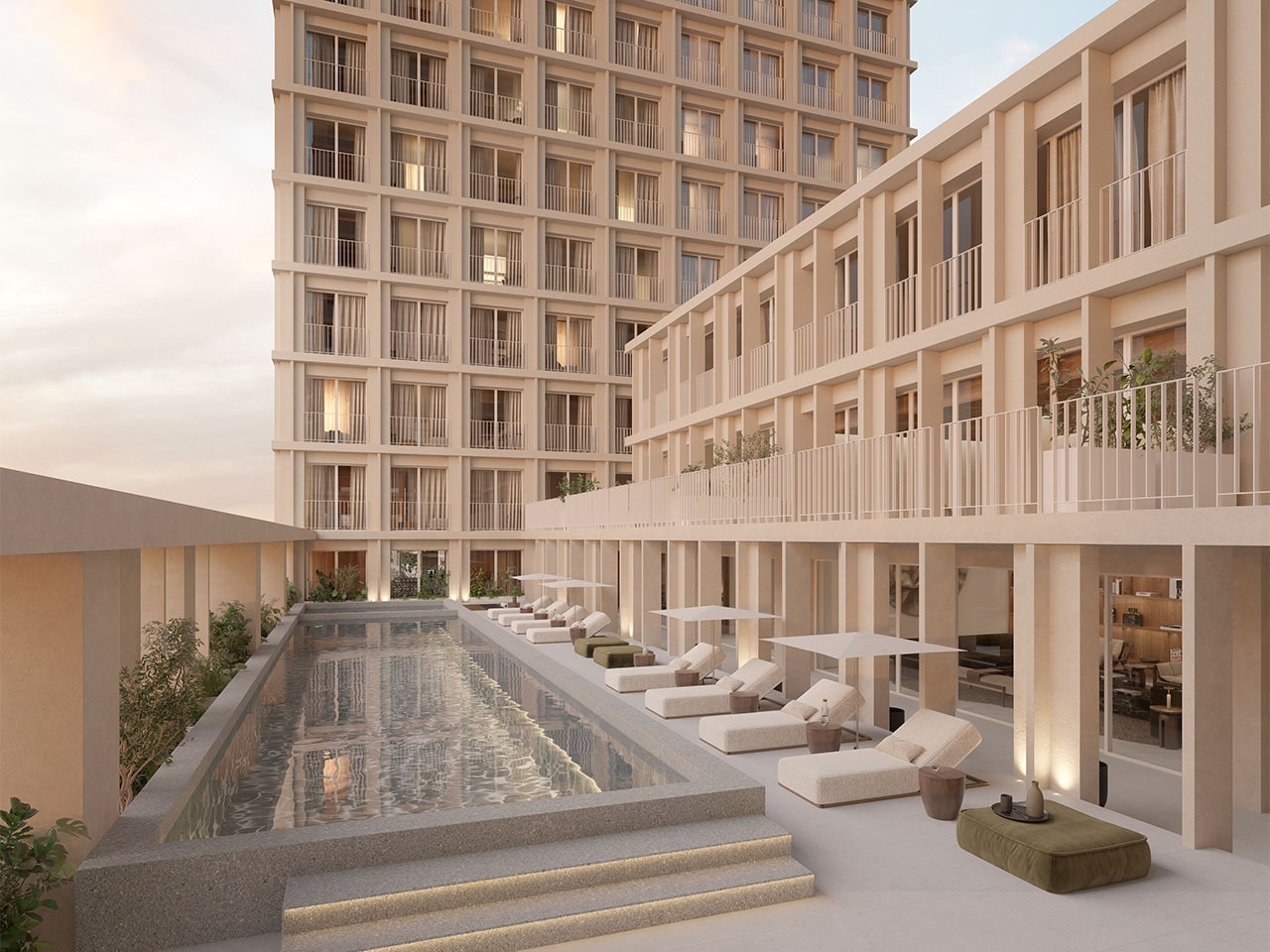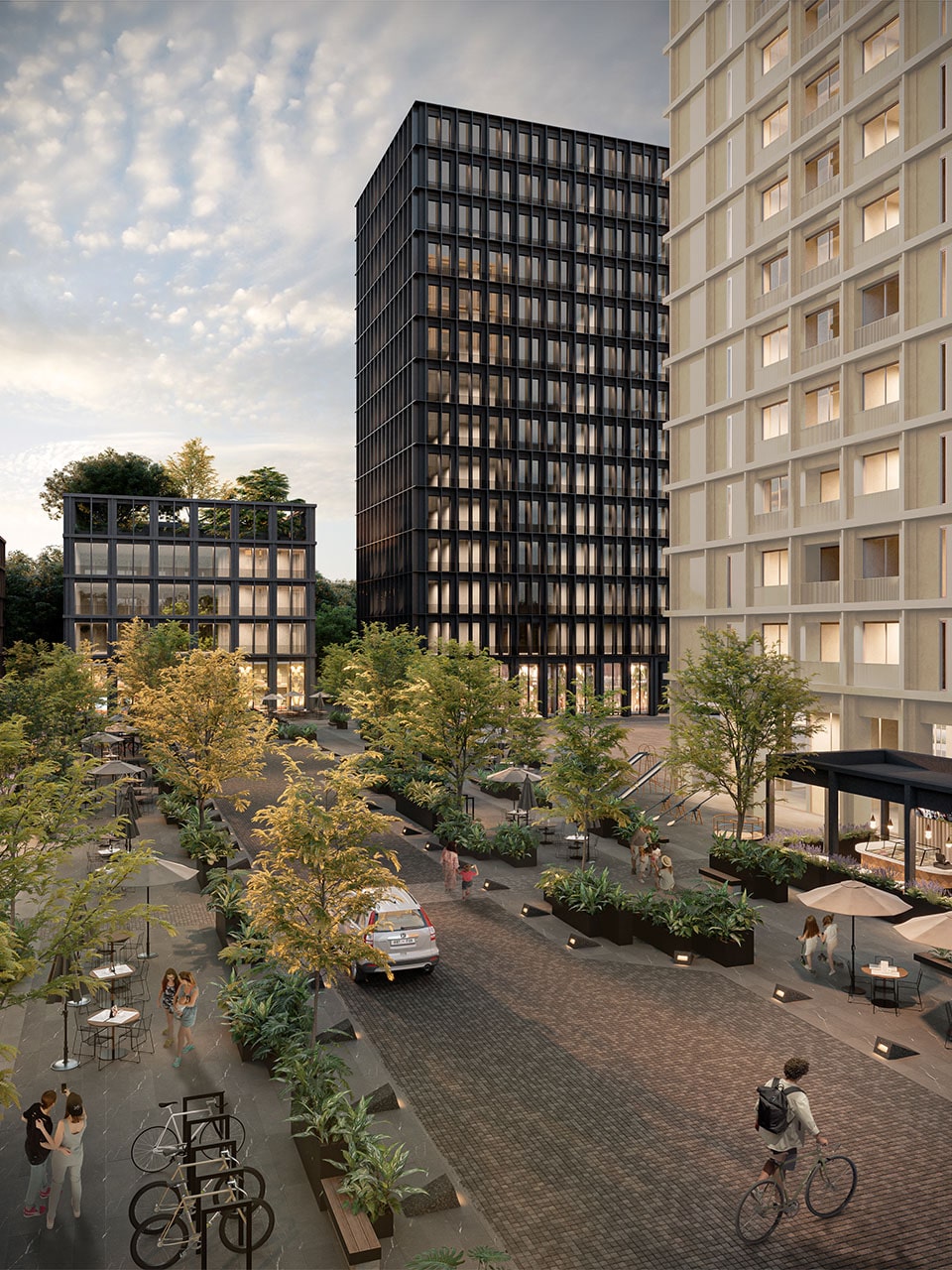 • 5 torres en total: 4 torres residenciales de 17 niveles y 1 torre corporativa de oficinas.